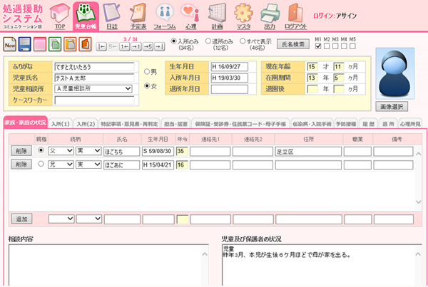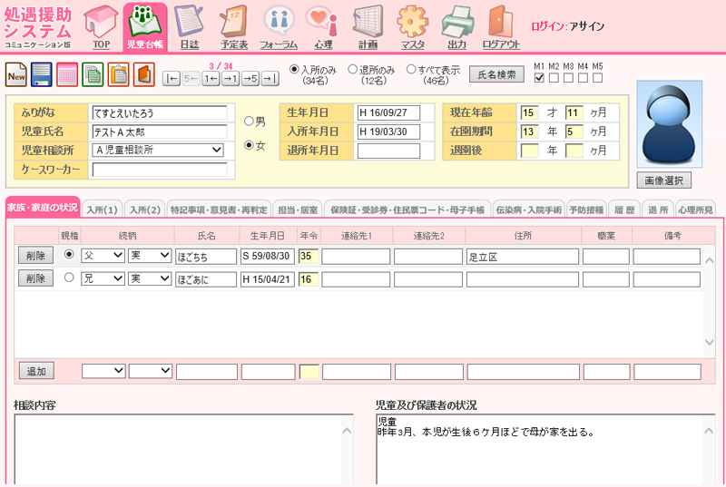 児童台帳画面