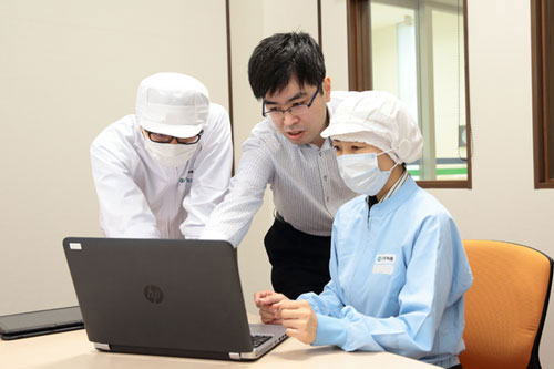 また旭物産様は多くのお客様とのお取引があり、出荷までの時間も大変シビアですので、受注業務など滞りなくまわるようサポートをさせていただいております。そのため週2日で旭物産様に滞在し、システムでは対応しきれないことを手作業でサポートしたり、広い工場あちこちでのトラブル解決を行ったりしています。