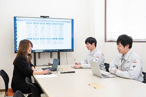 生産管理システムですと、関係する様々な部署ごとに異なった業務フローがあるので、それに応じたシステムを分かりやすく・使いやすくしていただいております。各マスタや在庫管理、受発注の操作性のカスタマイズの他、私のいる総務課の場合、化学物質規制管理に関するエビデンス受領・発行の管理やchemSHERPAデータ作成に必要な細かな設定など、従来Excelで行っていた煩雑な作業をシステム内で完結するためのカスタマイズもお願いしました。